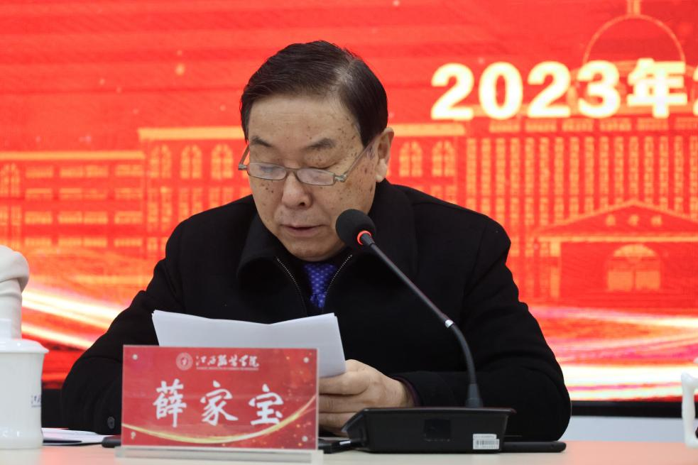 薛家宝指出,2023年是全面贯彻党的二十大精神的开局之年,是学校实施“十四五”事业发展规划、推进示范应用型本科高校的重要之年,也是学校向第二步战略目标“上层次”全面进发的关键之年。