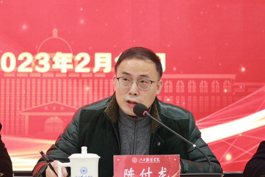 党委书记陈付龙在讲话中简要回顾了2022年学校各项工作的进展和成效,并代表校党委对大家的辛勤工作和无私奉献表示衷心的感谢和崇高的敬意。陈付龙用“唱好三支歌”为新学期工作提出了要求,指明了方向。“唱好国歌,增加紧迫感”、“唱好国际歌,团结起来实现新目标”、“唱好校歌,弘扬江服精神”。他强调,领导干部要有空杯心态,轻装上阵,在倒空自身“杯子”中迸发干事热情、增强干事本领、把牢成事准则,才能创造新业绩;领导干部要讲政治、讲规矩,要有斗争精神、斗争本领,要善于团结共事。懂团结是一种智慧,会团结是一种能力,只要我们上下团结一心,拧成一股绳,在团结中干事,在干事中团结,我们学校的发展目标和申硕目标就一定能够实现;领导干部要在学校各项工作中善作善为,共同唱响《书写华章,织就辉煌》,奋力谱写特色鲜明的高水平应用型大学建设新篇章。