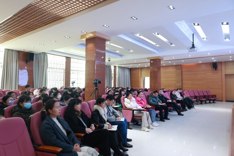 新闻中心讯(学工处供稿) 为深入学习贯彻落实党的二十大精神和习近平总书记关于教育的重要论述,提升学校心理健康教育水平,切实维护师生身心健康。2月18日上午,学校邀请了江西省心理专家、华东交通大学心理素质教育研究院常务副院长舒曼教授来校作专题培训。校党委副书记唐新强出席培训会,学工处全体人员,各学院党总支书记(副)、学工办主任(副)、全体辅导员及部分宿管员参加了此次培训。
