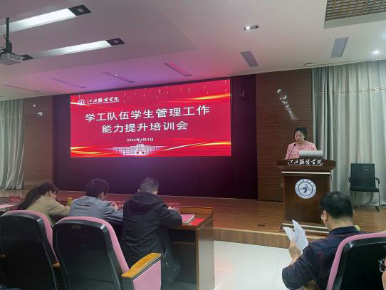 新闻中心讯(学工处供稿)为深入学习贯彻落实党的二十大精神,贯彻落实全国高校思想政治工作会议精神和教育部、省教育厅相关文件要求,不断提升我校思政育人质量,提高辅导员业务素质和工作能力,进一步推动辅导员队伍职业化专业化建设,根据学校2023年辅导员培训方案安排,近日,我校在行政楼一楼报告厅召开了3月学工队伍学生管理工作能力提升培训会。校党委副书记唐新强出席会议,宣传部、学工部、校团委等职能部门负责人,各学院党委(总支)书记(副)、学工办主任(副)、全体辅导员参加了会议。会议由学工处思政科副科长刘检莲主持。