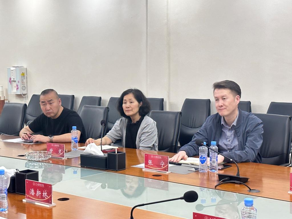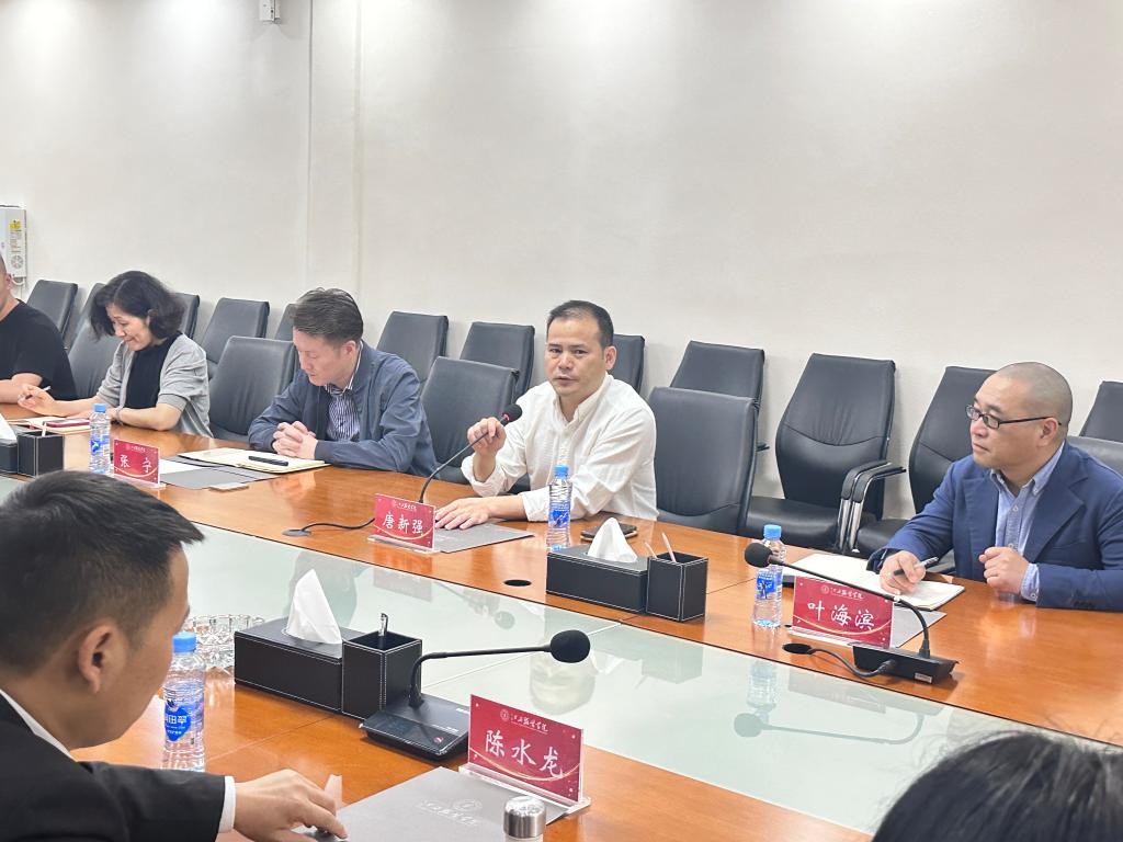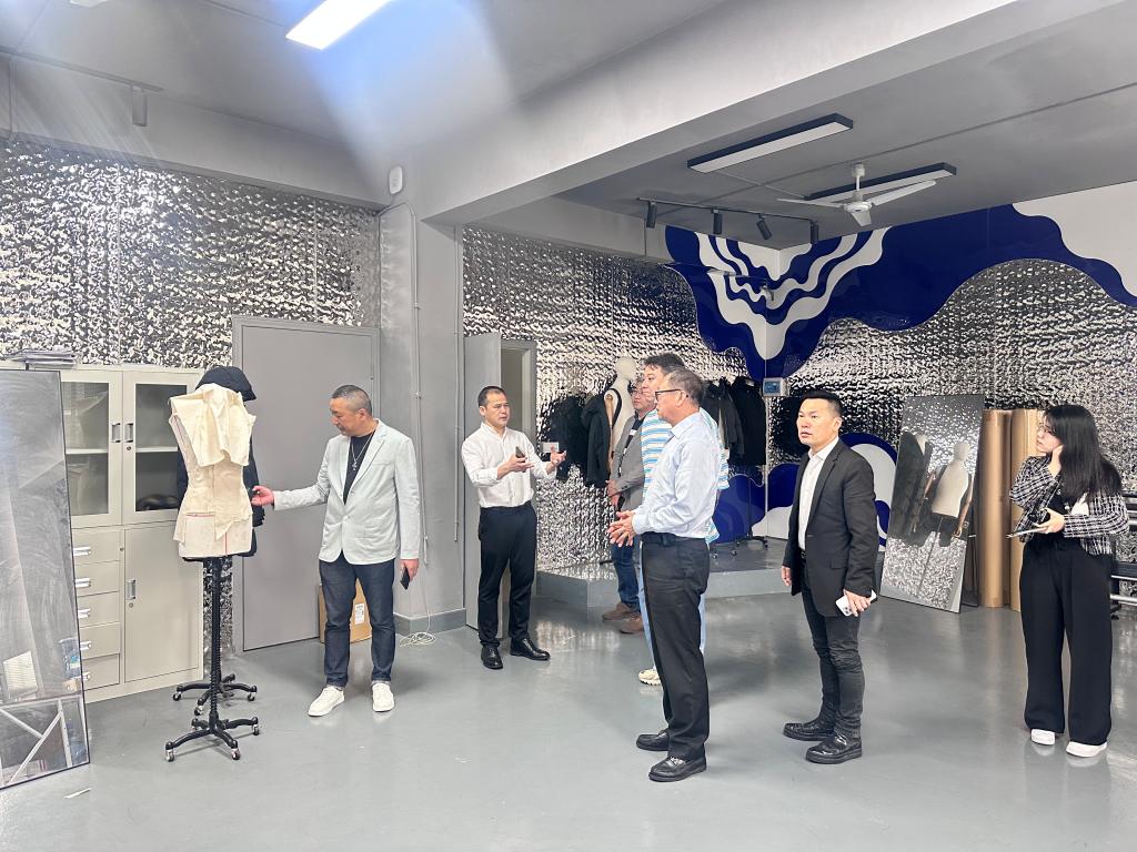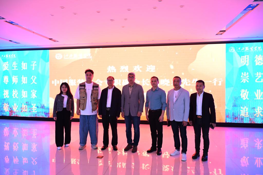 新闻中心讯(就业处供稿) 4月18日,在中国服装协会专职副会长杨晓东的带领下,浙江省湖州市企业家协会织里分会会长潘新林,湖州蔚蓝智衣科技有限公司董事长、郎田服饰有限公司总经理严良言,湖州南童魔服饰有限公司董事长颜烈荣,湖州七秒实业有限公司创始人陈水龙等企业家一行来校选聘人才并就校企合作开展深入交流。