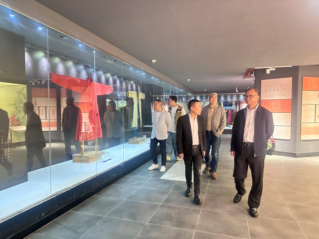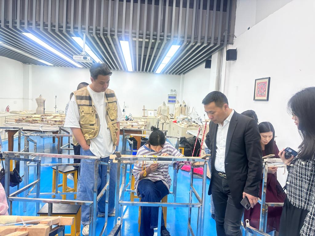 人才选聘会后,校党副书记唐新强陪同来宾一行参观了学校的校园建设、实训场所、服饰博物馆、图书馆、名师工作室及校内产教融合项目教学成果展等。