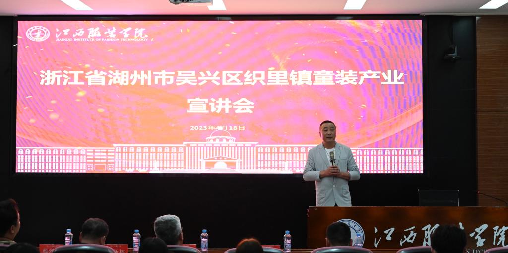 浙江省湖州市吴兴区企业家协会织里分会会长潘新林介绍了织里童装产业的发展现状,他说,织里镇是名副其实的“中国童装之都”,位于浙江与江苏的交界之地,是中国长三角地区民营经济最具活力、市场化程度最为发达、人民生活最为富裕的地区之一。织里是童装的生产基地,自1989年开始第一个轻纺市场落地到现如今全镇5700家童装企业的巨大产业,正在推动着中国服装产业的飞速发展。目前中国童装有70%以上都来自这里,此地也打造了众多童装品牌网红店。此行的目的是希望学校与企业能够加强沟通交流,深入开展多维度的校企合作,为企业培养和输送更多优秀人才。此行的目的是希望学校与企业能够加强沟通交流,深入开展多维度的校企合作,为企业培养和输送更多优秀人才。