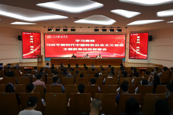 陈付龙从四个方面进行动员部署。一是提高政治站位,深刻理解主题教育的重大意义。要认识到主题教育是强化师生党员理论武装、推进学校全面从严治党、深化学校事业改革发展的迫切需要。二是务求实效,紧紧锚定主题教育的目标要求。要牢牢把握主题教育的总要求和根本任务,凝心铸魂筑牢根本、锤炼品格强化忠诚、实干担当促进发展、践行宗旨为民造福、廉洁奉公树立新风。三是贯穿始终,严格落实主题教育的一体推进。要深入学习、准确把握、认真践行、抓好落实,切实做实“四篇文章”,推进主题教育走深走实。四是精心组织,坚决扛起主题教育的政治责任。要加强组织领导、压实责任,统筹推进、凝聚合力,切实把主题教育成效转化为履职尽责的实际行动,为推进学校各项工作高质量发展凝心聚力,为全面建设社会主义现代化江西贡献智慧和力量!