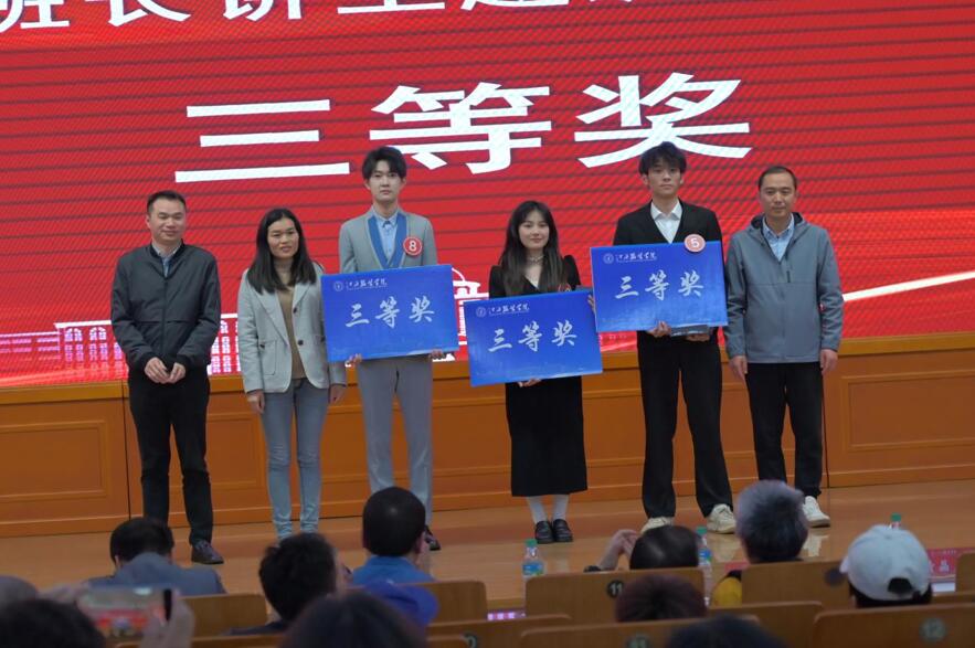 为进一步拓展和创新学校德育工作方法和途径,发挥主题班会教育课的育人作用,加强学校班长队伍建设,促进班长工作能力不断提高,强化班级自我管理、自我教育、自我服务的能力,进一步发挥班长典型引领示范作用,切实加强班集体建设,提高班级学生素养。我校学工处于4月25日在思贤楼三楼报告厅举行了2023年春季学期“班长讲主题班会课”决赛。此次决赛邀请了江西师范大学心理学院硕士生导师,中国心理学会注册心理师,国家二级心理咨询师熊红星博士,国家心理咨询师认证培训师、江西数字文化集团顾问周群,校学生工作处处长邓良峰等三人担任评委。校党委副书记唐新强,各学院的党委(党总支)书记、全体辅导员老师以及全体班长们观摩了比赛。