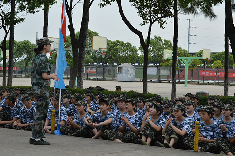 飒爽英姿的女教官正在一展歌喉,引领大家齐唱军旅歌曲,现场气氛其乐融融。
