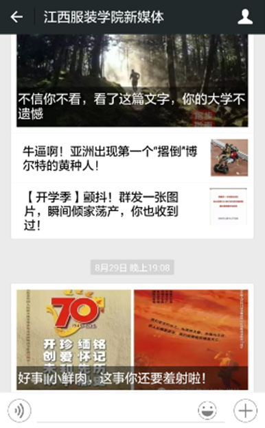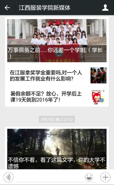 从八月中旬开始,我校《服装报》的记者们便开始为新生的到来做了准备工作,报社的微信、微博等公众线上平台相继推出了《不得不知道的大学室友相处细节》、《新生开学必备物品清单》、《新生军训必备物品清单》等一系列迎新专题报道,从交通、宿舍、快递、食堂浴室等生活方面介绍了一些校园的基本情况,受到了新生及家长的点赞好评。同时,针对新生们普遍关心的问题,校报还在微博和微信等网络平台上与新生进行了互动,给新生们答疑解惑。此外,为了方便新生们的入学报到,校报摄影记者还专门拍摄了报到流程。在新浪微博上的做的《我们的大学》不仅让新生对自己的专业和学校教学设施更加了解,更为新生提供了一个交流的平台。