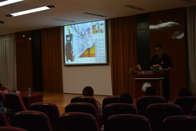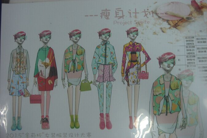 今年5月初,就业指导中心开始在全校范围内启动了“金苑”女装款式设计大赛,通过校园海报、横幅、电子屏和学校网站等多途径广泛宣传本次比赛,共收到了各年级的368份作品,经过企业评选出30份作品参加总决赛。总决赛中选手结合PPT演示文稿,讲解所设计的款式图寓意和灵感来源。