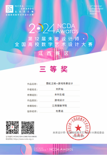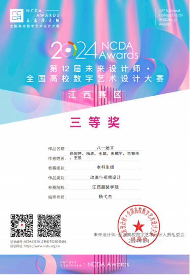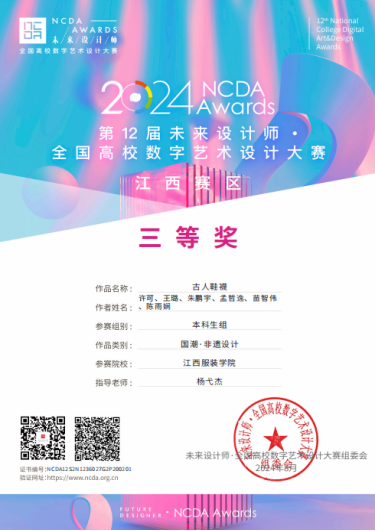 在2024年第12届《未来设计师·全国高校数字艺术设计大赛(NCDA)》中,我校时尚传媒学院的师生再次发力,成功斩获了国赛三等奖1项、省赛三等奖4项的成绩,再创佳绩。