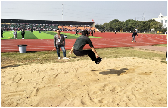 服装报讯(实习记者 王琴 刘媛媛)11月3日,在教工中青年跳远预决赛中,有20名老师参加了比赛。选手们在做了热身、量步点等一系列的准备活动之后,便开始了真正的角逐。老师们卸下课堂中的严肃,在运动场上一展风采。来自工程学院的冯琼芳老师以2.77米的成绩拿下了教工中青年女子组的冠军。“太意外了,没想到能拿到这个冠军,好想和我的学生们一起分享这个好消息。”冯老师一比完赛,就跑到一百米预赛场地给学生们加油鼓劲了。设计学院的谭老师以4.77米的成绩获得男子组的冠军。谭老师表示,很享受运动的热情。