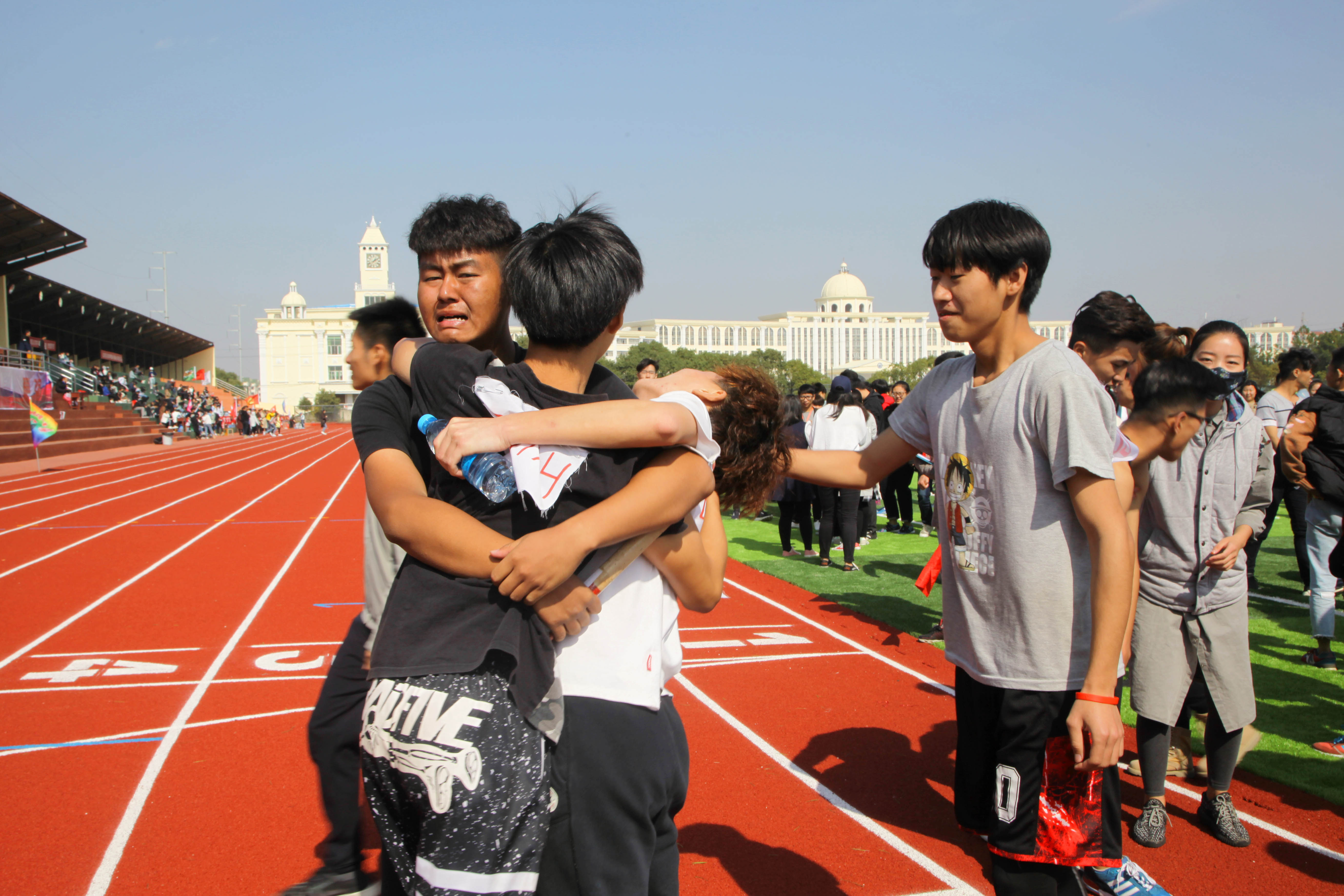 比赛场上,谁说女子都是巾帼英雄,时装5班的4位运动员在赛道上,完成一次一次的超越,迎来了最后的胜利。比赛中,刘欣瑜担任的是最后一棒的接力,但她接到接力棒的时候,落后其他赛道的人有那么一段距离了,她不顾腿上的伤,凭借意志力和奔跑技巧超越了前面的选手。“拿下了冠军,真的开心,好开心”刘欣瑜抑制不住内心的激动对记者说。