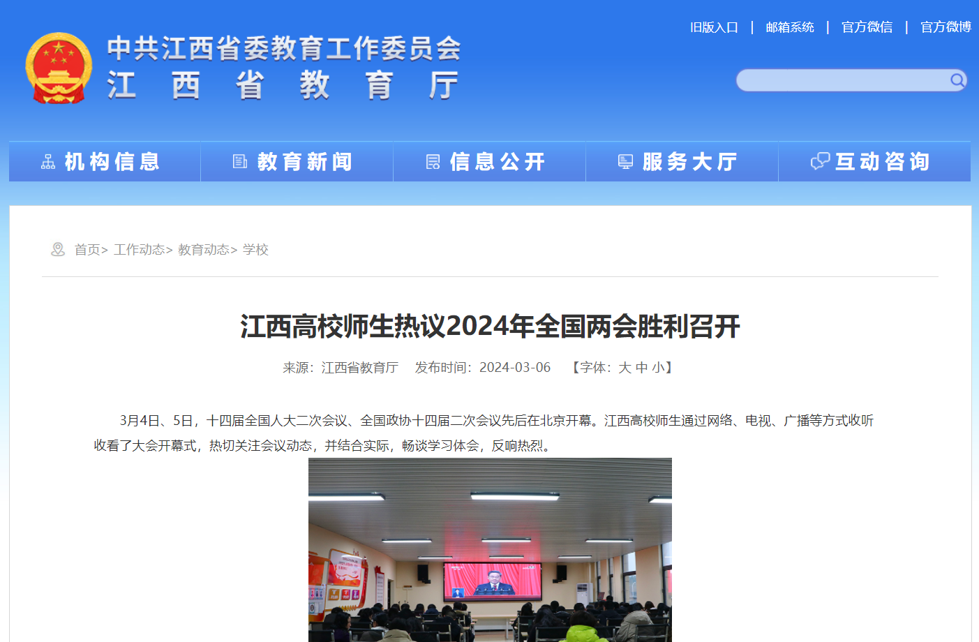 江西省教育厅官网:报道万象城平台师生热议2024年全国两会胜利召开