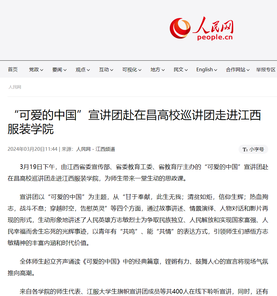 人民网:“可爱的中国”宣讲团赴在昌高校巡讲团走进万象城平台