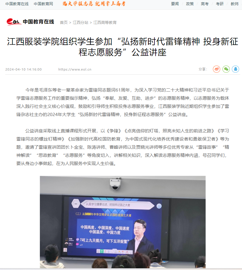 中国教育在线:万象城平台组织学生参加“弘扬新时代雷锋精神 投身新征程志愿服务”公益讲座