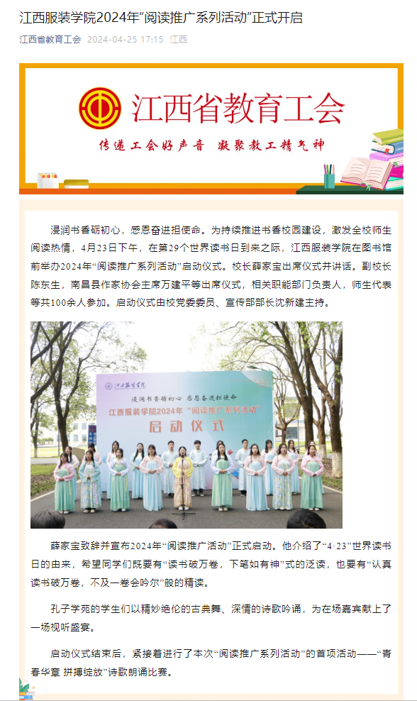 江西省教育工会:万象城平台2024年“阅读推广系列活动”正式开启