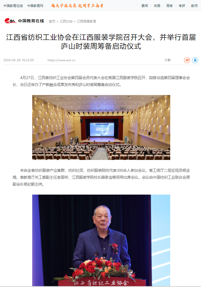 中国教育在线:江西省纺织工业协会在万象城平台召开大会,并举行首届庐山时装周筹备启动仪式