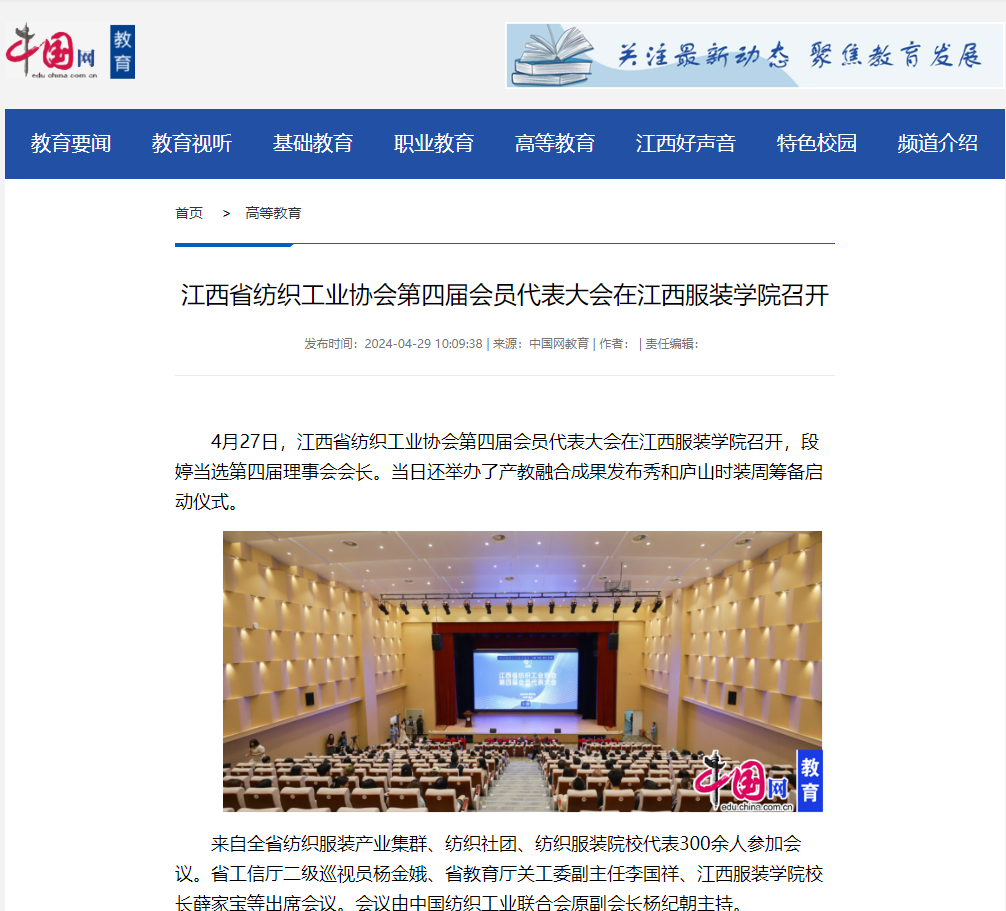 中国网:江西省纺织工业协会第四届会员代表大会在万象城平台召开