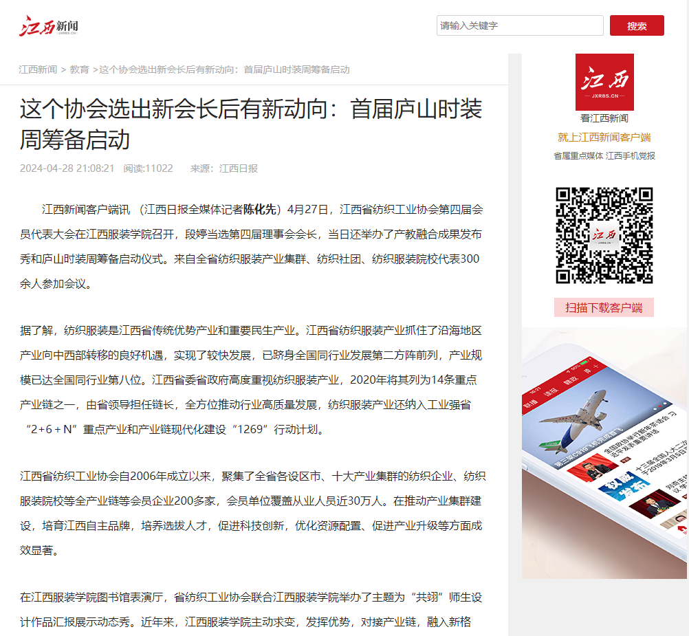江西新闻网:这个协会选出新会长后有新动向:首届庐山时装周筹备启动