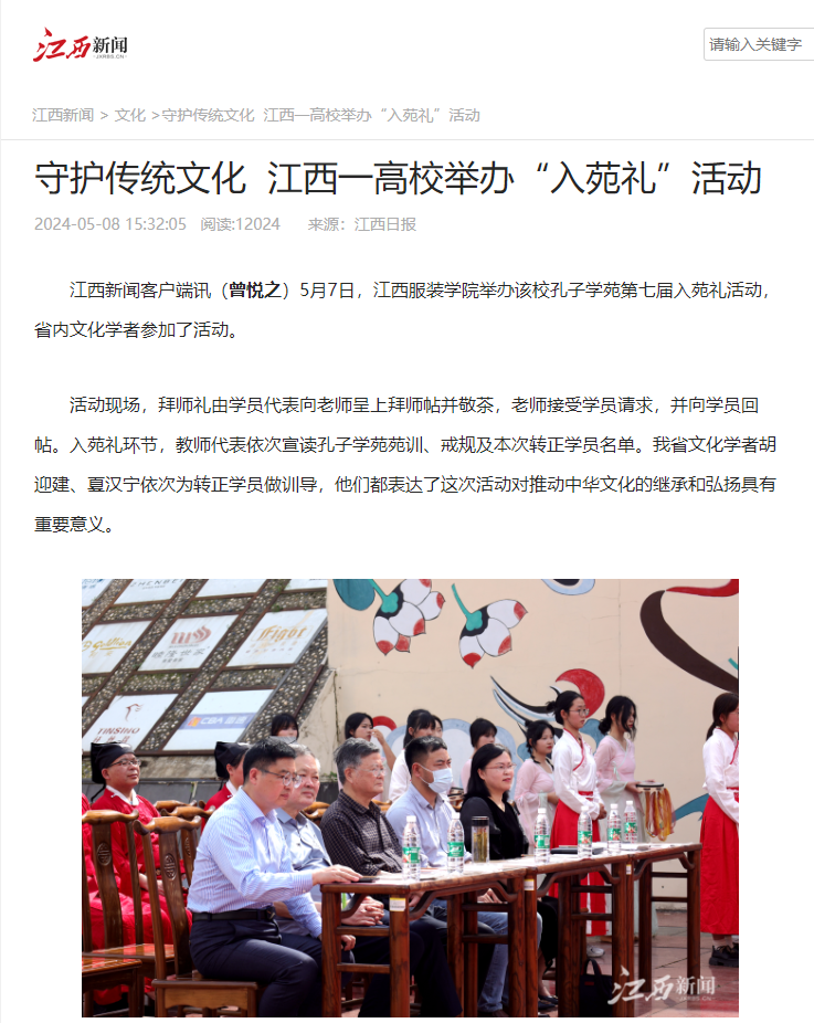 江西新闻网:守护传统文化 江西一高校举办“入苑礼”活动
