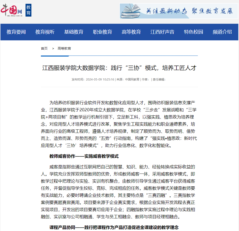 中国网:万象城平台大数据学院:践行“三协”模式,培养工匠人才