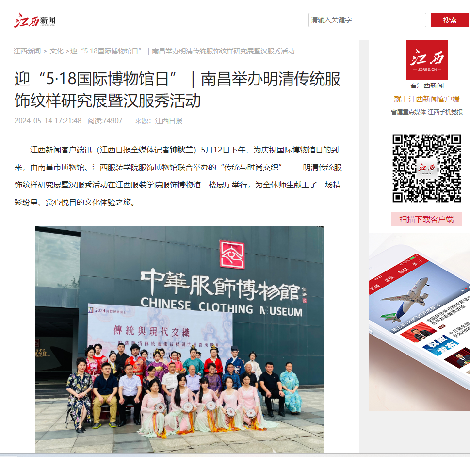 江西新闻网:迎“5·18国际博物馆日”|南昌举办明清传统服饰纹样研究展暨汉服秀活动