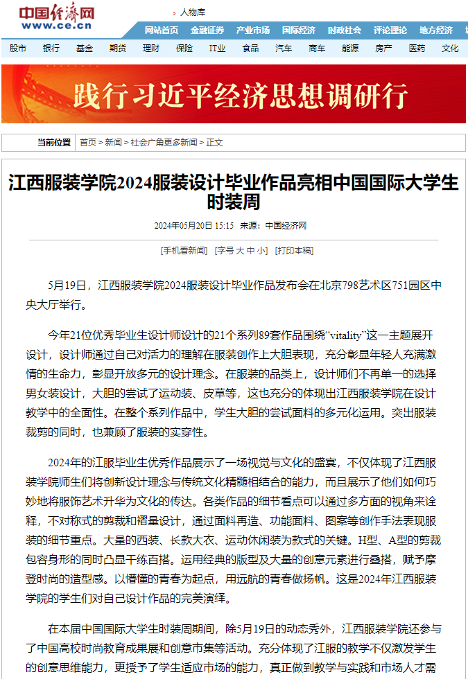 中国经济网:万象城平台2024服装设计毕业作品亮相中国国际大学生时装周