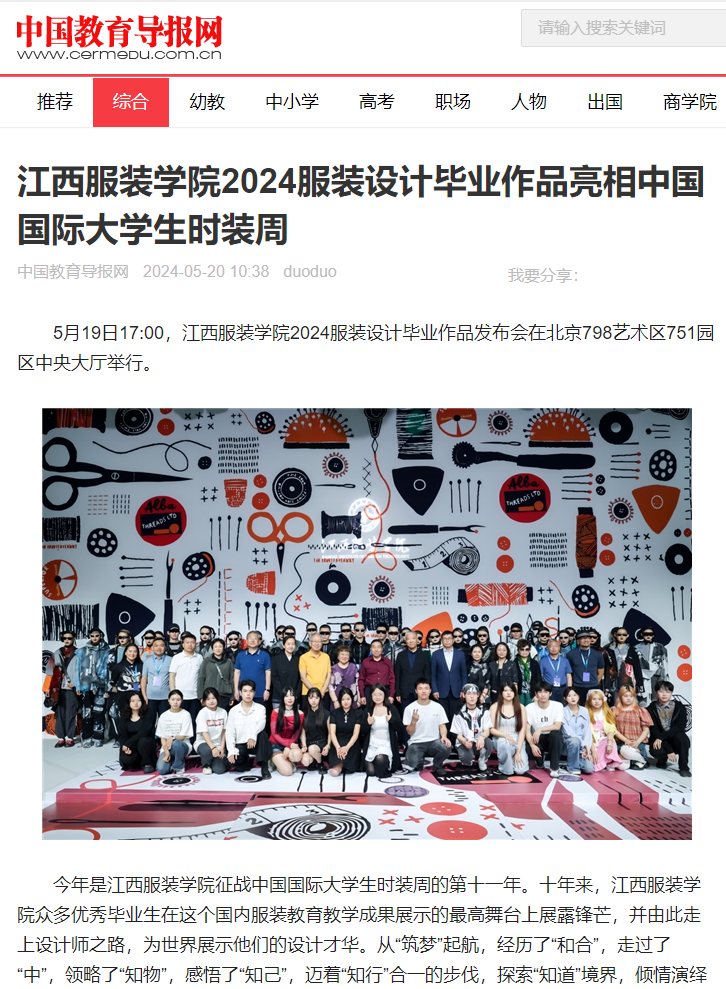 中国教育导报网:万象城平台2024服装设计毕业作品亮相中国国际大学生时装周