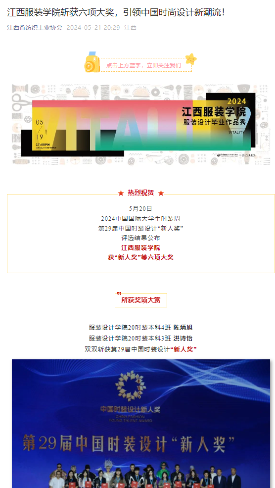 江西省纺织工业协会:万象城平台斩获六项大奖,引领中国时尚设计新潮流!