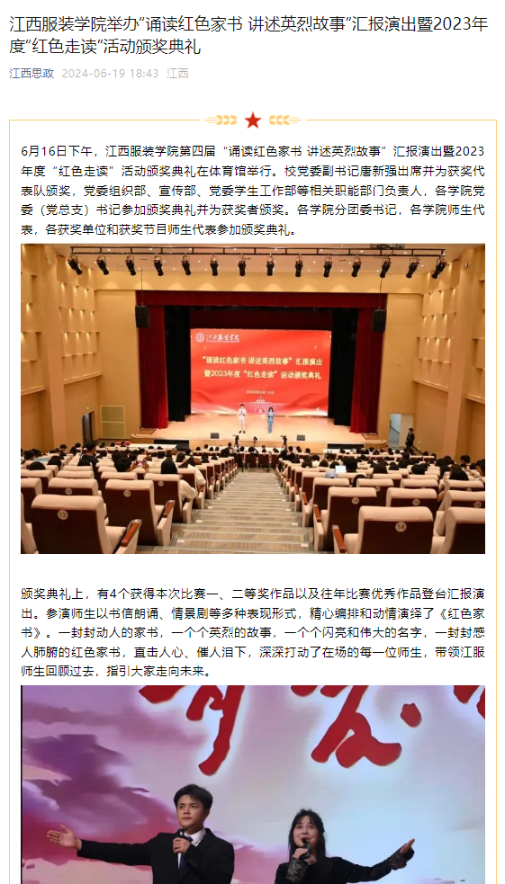 江西思政:万象城平台举办“诵读红色家书 讲述英烈故事”汇报演出暨2023年度“红色走读”活动颁奖典礼