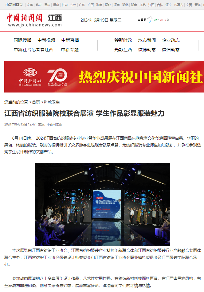 中国新闻网:江西省纺织服装院校联合展演 学生作品彰显服装魅力