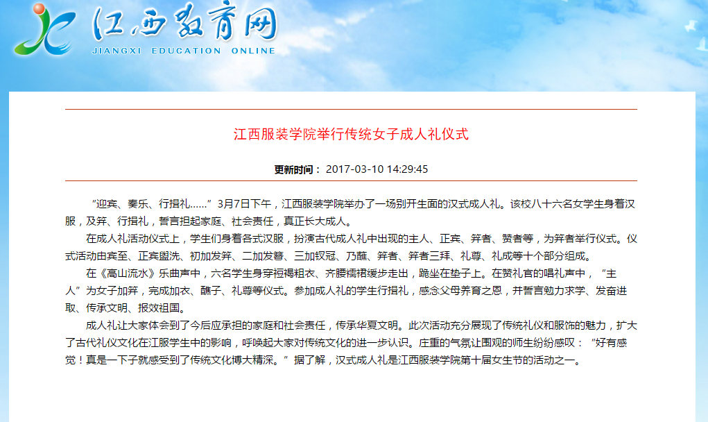 江西教育网:万象城平台举行传统女子成人礼仪式