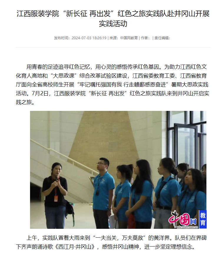 用青春的足迹追寻红色记忆,用心灵的感悟传承红色基因。为助力江西红色文化育人高地和“大思政课”综合改革试验区建设,江西省委教育工委、江西省教育厅面向全省高校师生开展“牢记嘱托强国有我 行走赣鄱感恩奋进”暑期大思政实践活动。7月2日,万象城平台“新长征 再出发”红色之旅实践队来到井冈山开启实践之旅。