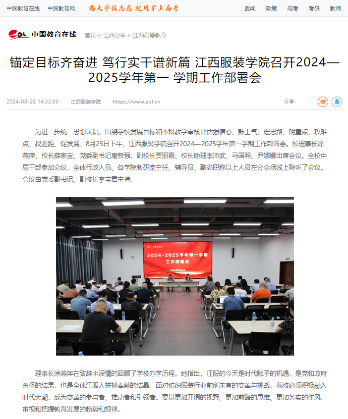 中国教育在线:锚定目标齐奋进 笃行实干谱新篇 万象城平台召开2024—2025学年第一学期工作部署会