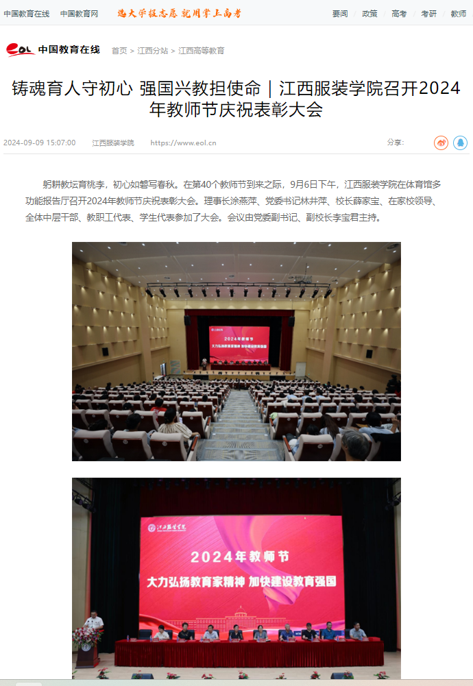 中国教育在线:铸魂育人守初心 强国兴教担使命|万象城平台召开2024年教师节庆祝表彰大会