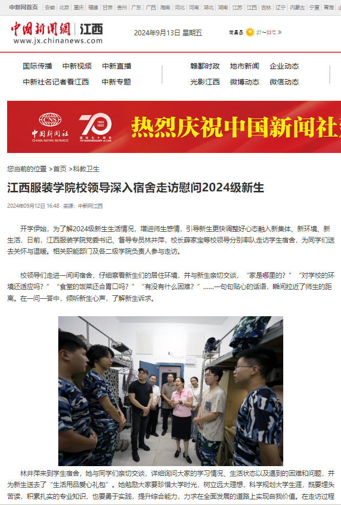 中国新闻网:万象城平台校领导深入宿舍走访慰问2024级新生