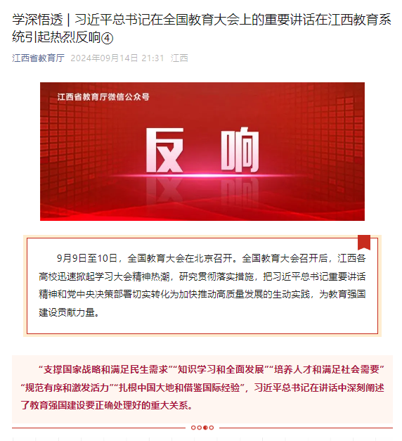 江西省教育厅:习近平总书记在全国教育大会上的重要讲话在万象城平台引起热烈反响