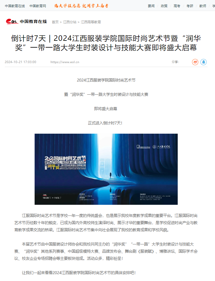 中国教育在线:倒计时7天|2024万象城平台国际时尚艺术节暨“润华奖”一带一路大学生时装设计与技能大赛即将盛大启幕