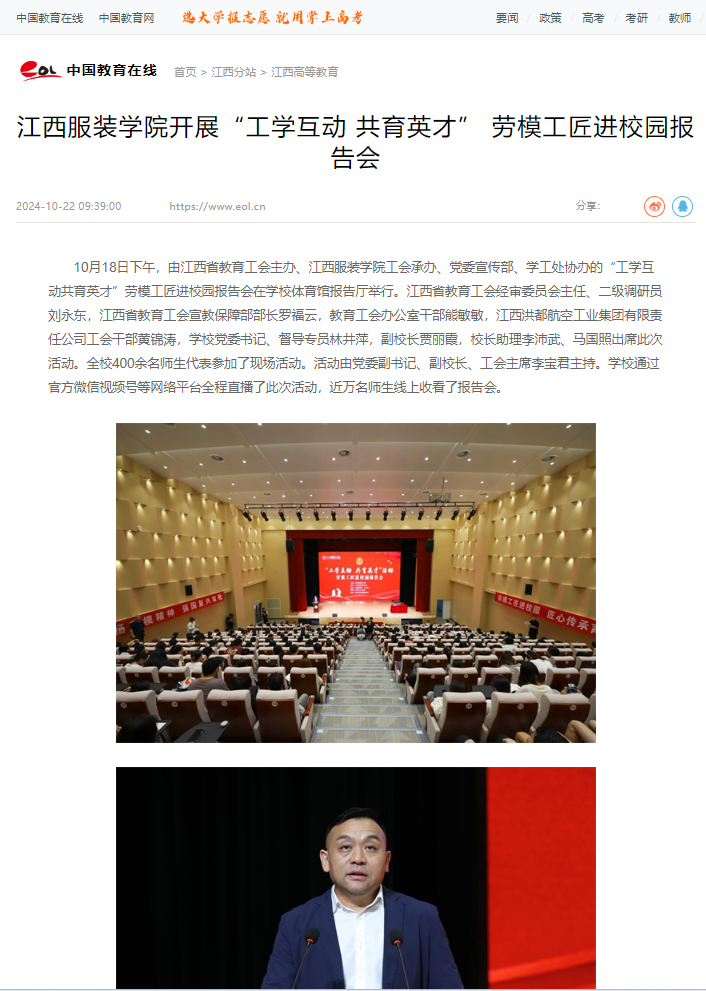 中国教育在线:万象城平台开展“工学互动 共育英才” 劳模工匠进校园报告会