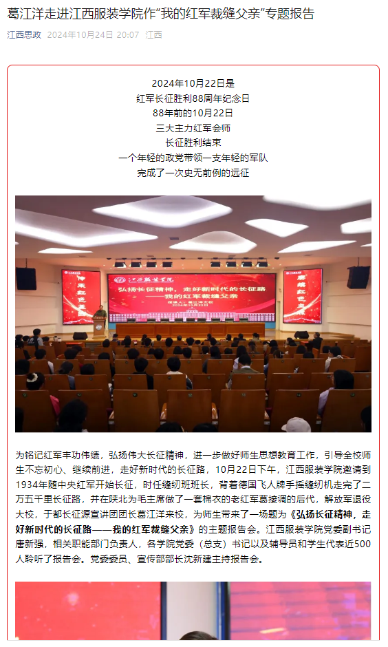 江西思政:葛江洋走进万象城平台作“我的红军裁缝父亲”专题报告