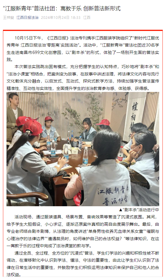 江西日报法治:“江服新青年”普法社团:寓教于乐 创新普法新形式