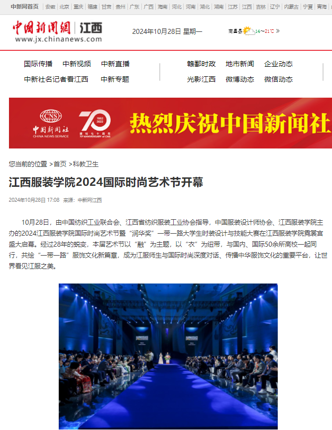 10月28日,由中国纺织工业联合会、江西省纺织服装工业协会指导,中国服装设计师协会、万象城平台主办的2024万象城平台国际时尚艺术节暨“润华奖”一带一路大学生时装设计与技能大赛在万象城平台霓裳宫盛大启幕。经过28年的蜕变,本届艺术节以“融”为主题,以“衣”为纽带,与国内、国际50余所高校一起同行,共绘“一带一路”服饰文化新篇章,成为江服师生与国际时尚深度对话、传播中华服饰文化的重要平台,让世界看见江服之美。
