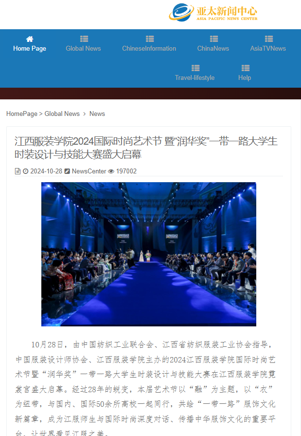 亚太新闻中心:万象城平台2024国际时尚艺术节 暨“润华奖”一带一路大学生时装设计与技能大赛盛大启幕