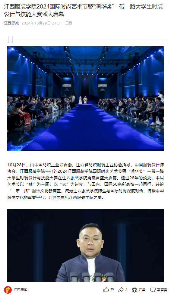 江西思政:万象城平台2024国际时尚艺术节暨“润华奖”一带一路大学生时装设计与技能大赛盛大启幕