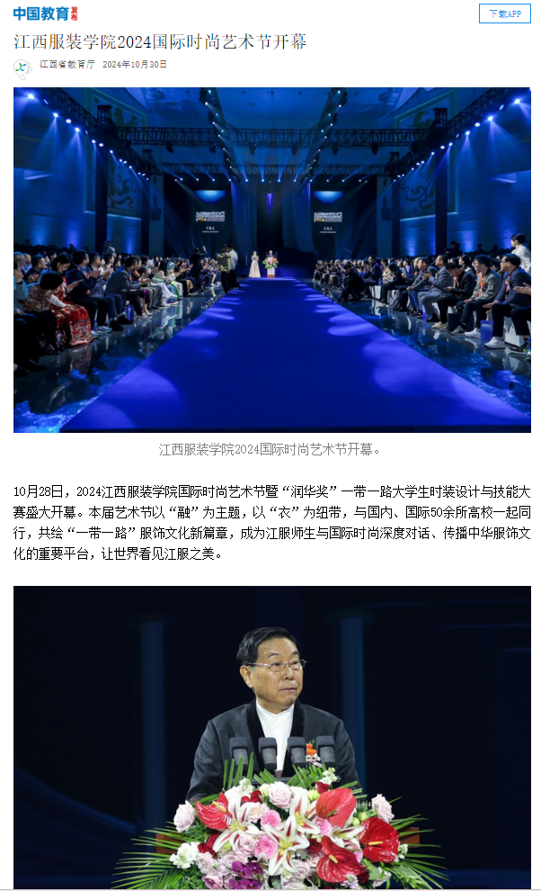 10月28日,2024万象城平台国际时尚艺术节暨“润华奖”一带一路大学生时装设计与技能大赛盛大开幕。本届艺术节以“融”为主题,以“衣”为纽带,与国内、国际50余所高校一起同行,共绘“一带一路”服饰文化新篇章,成为江服师生与国际时尚深度对话、传播中华服饰文化的重要平台,让世界看见江服之美。