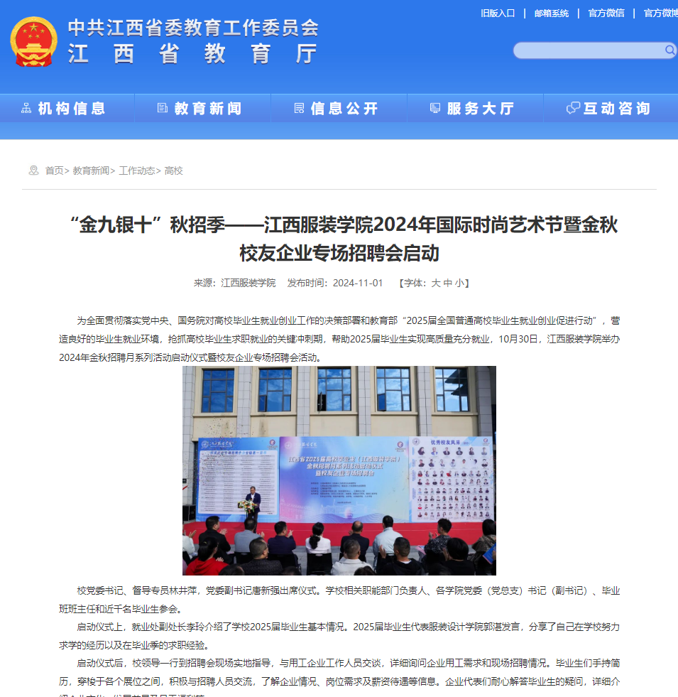 江西省教育厅官网:“金九银十”秋招季——万象城平台2024年国际时尚艺术节暨金秋校友企业专场招聘会启动