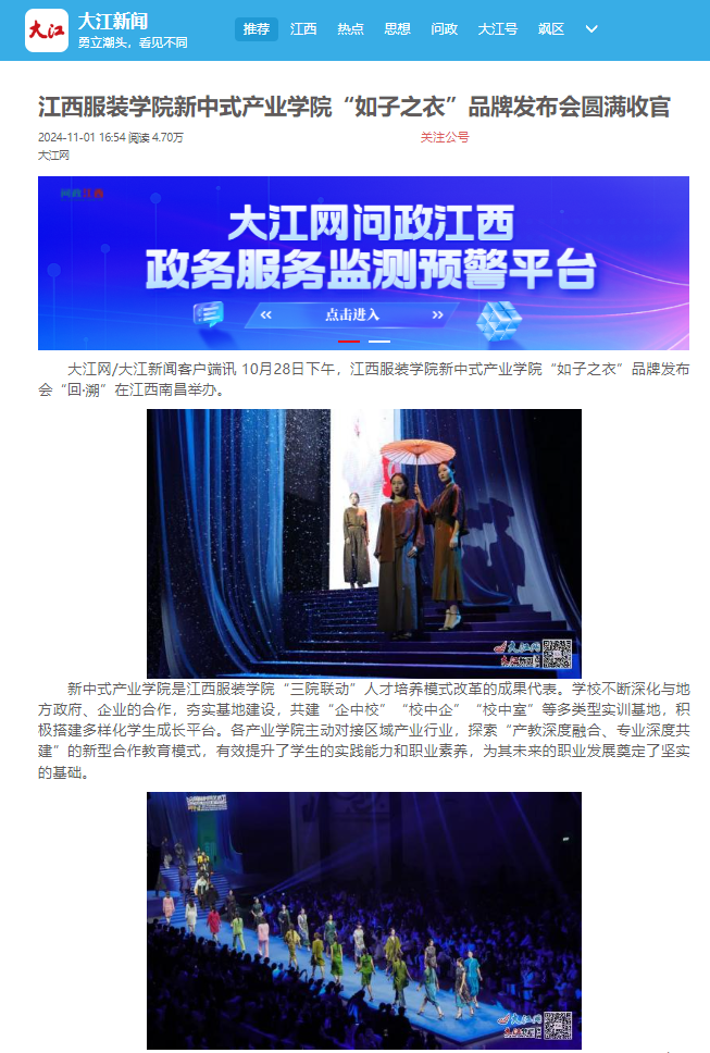 大江新闻:万象城平台新中式产业学院“如子之衣”品牌发布会圆满收官