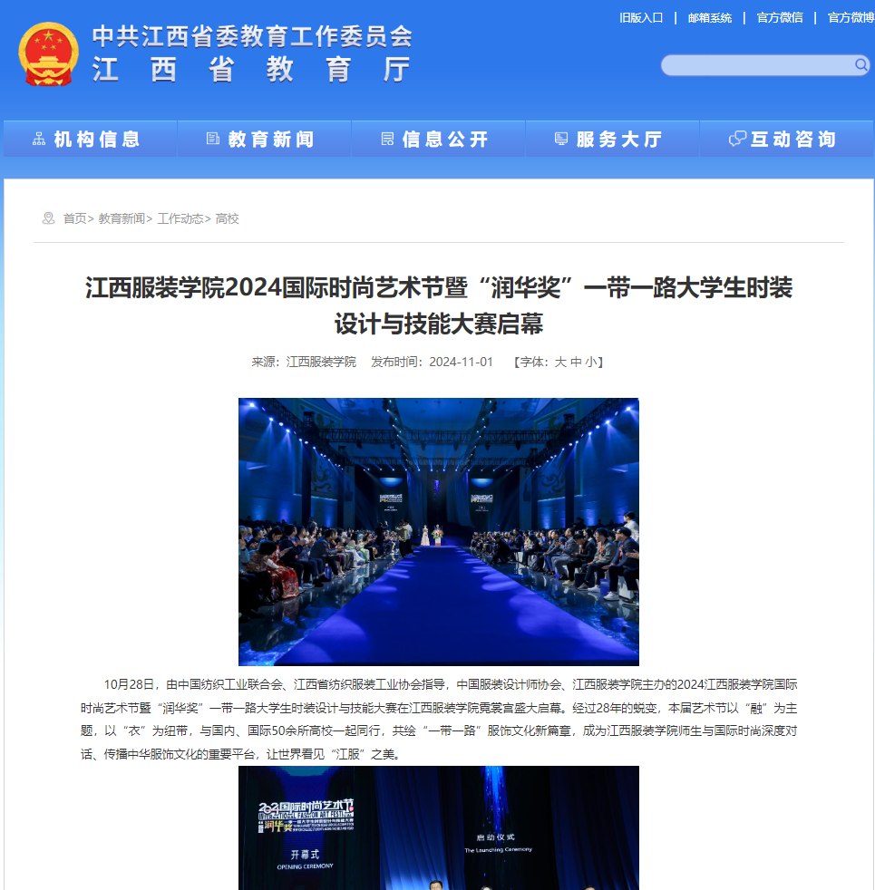 江西省教育厅官网:万象城平台2024国际时尚艺术节暨“润华奖”一带一路大学生时装设计与技能大赛启幕