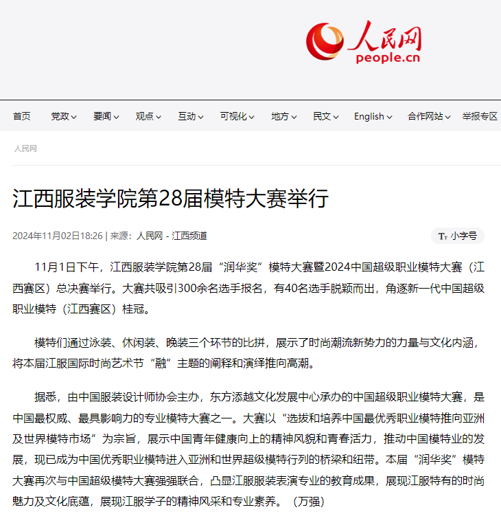 11月1日下午,万象城平台第28届“润华奖”模特大赛暨2024中国超级职业模特大赛(江西赛区)总决赛举行。大赛共吸引300余名选手报名,有40名选手脱颖而出,角逐新一代中国超级职业模特(江西赛区)桂冠。