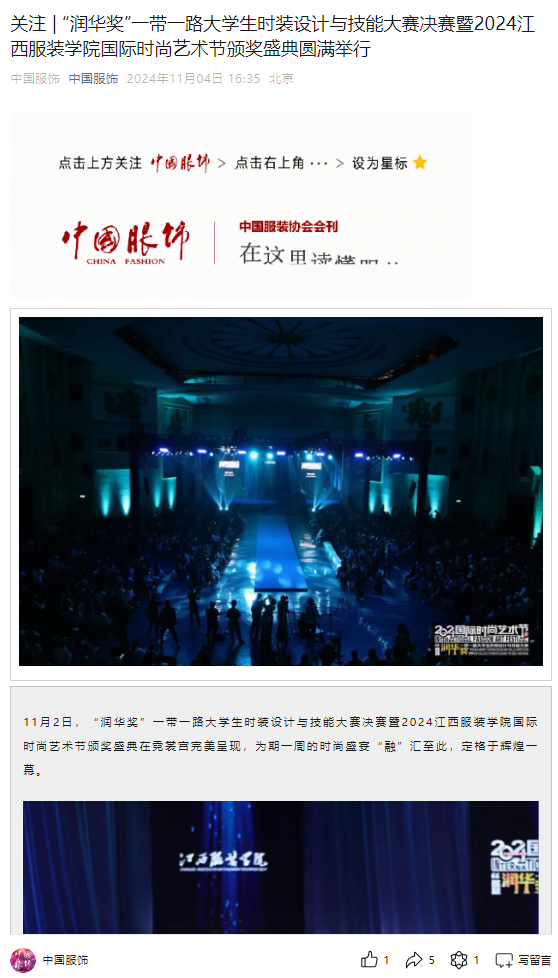 中国服饰:关注|“润华奖”一带一路大学生时装设计与技能大赛决赛暨2024万象城平台国际时尚艺术节颁奖盛典圆满举行