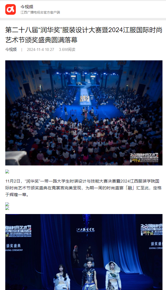 江西广播电视台今视频:第二十八届“润华奖”服装设计大赛暨2024江服国际时尚艺术节颁奖盛典圆满落幕